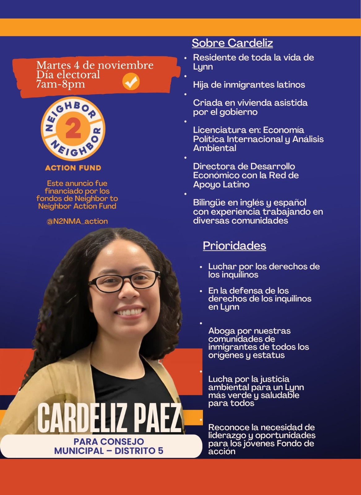 Vota por Cardeliz Paez para Concejal del Distrito 5 (haz clic para info de N2N)